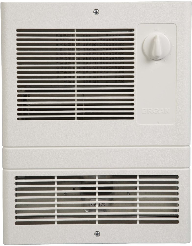 The Broan 10-1/2 in. x 12-1/2 in. 1,500-Watt White Fan-Forced Wall Heater is a large-capacity unit ideal for high heat-loss areas like lobbies, entrance ways and vestibules. This wall heater features a built-in, adjustable thermostat to help you control the temperature of a specific area. This wall heater wires easily to accommodate installation for 120 or 240-volt applications.