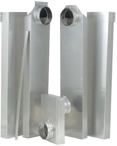 This item is designed to fit between the studs inside the wall. It does a great job of carrying the exhaust air through the top plate and into attic/floor space. You should use the 4" aluminum vent to complete the run to the outside. This dryer vent rough-in system has (3) 2-1/2" clearance telescoping sections that extend from 29" to 77". It also has one male snap-lock fitting, one female snap-lock collar and mounting strap, as well as all-metal rigid construction that meets most in-wall codes.